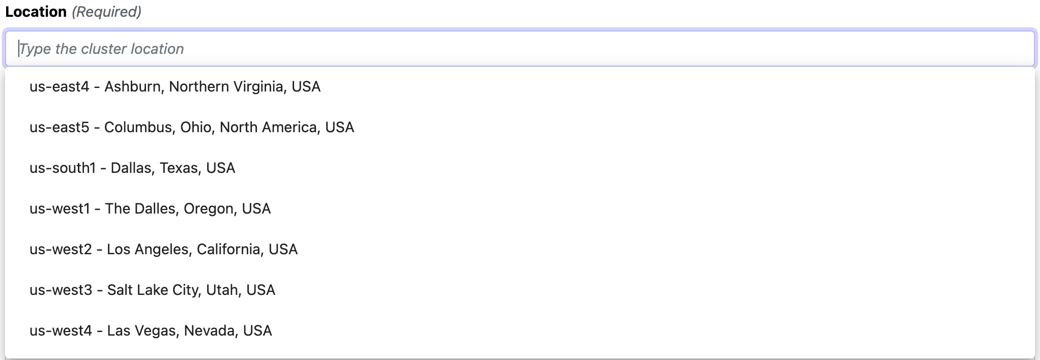 GKE clusters can be either regional or zonal. For example, us-west1 identifies the United States West-Coast region, which has three zones: us-west1-a, us-west1-b, and us-west1-c.
